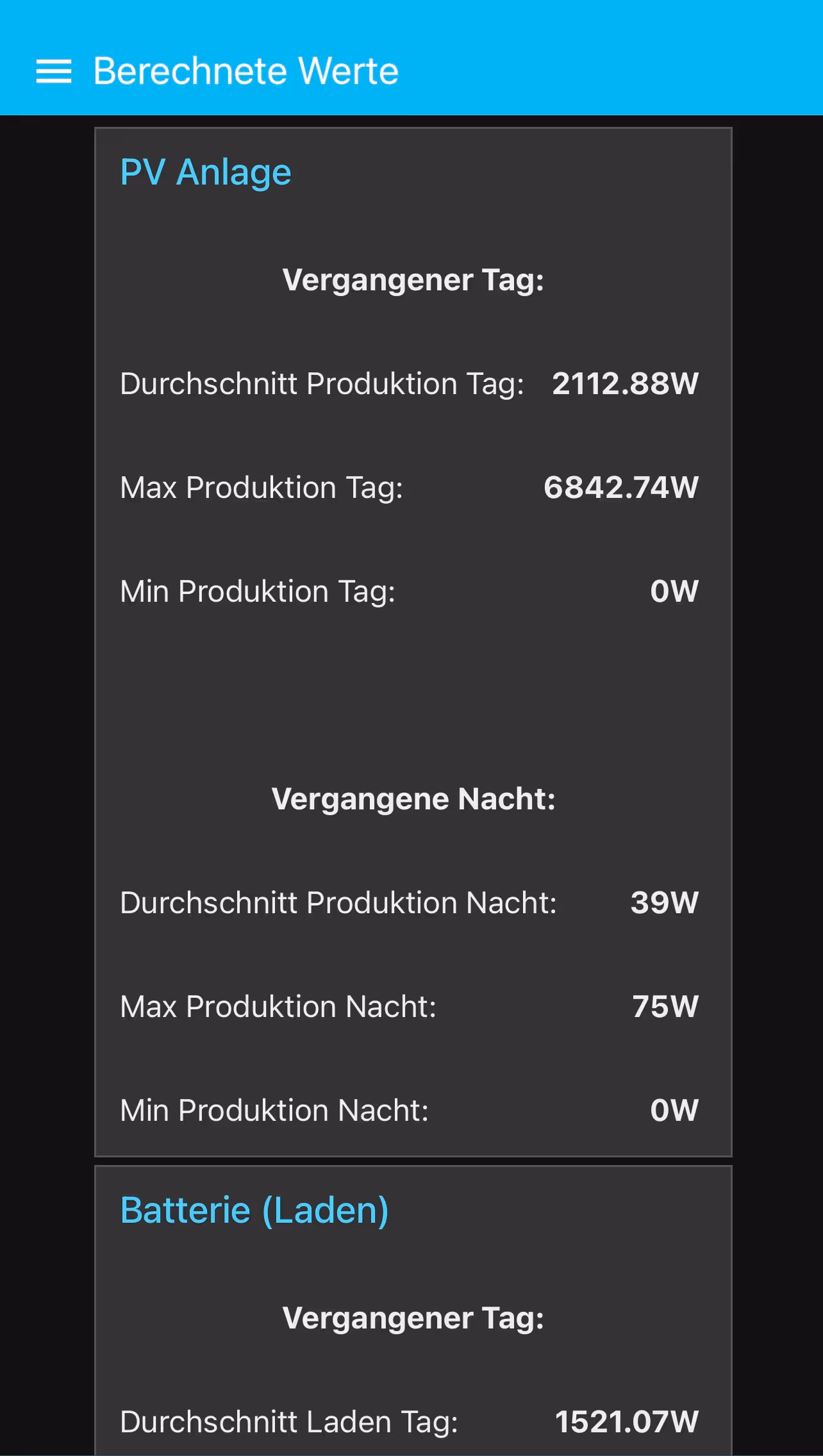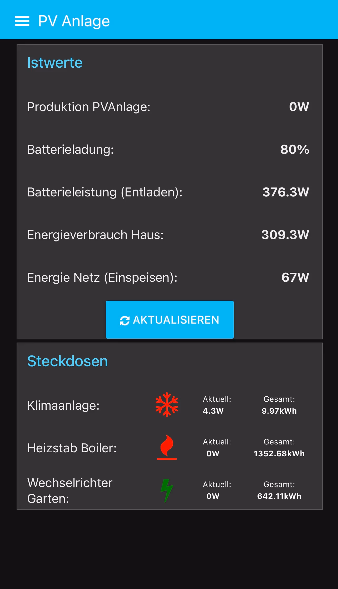 Leistungsdaten der PV-Anlage aus.